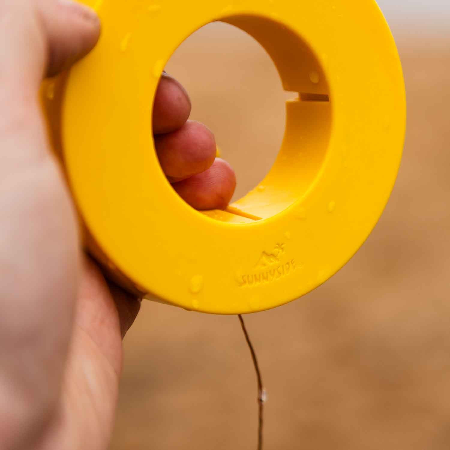 Ein echtes Extra: Im aufgewickelten Zustand verwandelt sich die Camplight auf der SPOOL in ein stimmungsvolles Tischlicht. Einfach über eine Bier- oder Weinflasche stülpen und schon entsteht gemütliches Licht für lange Abende draußen.